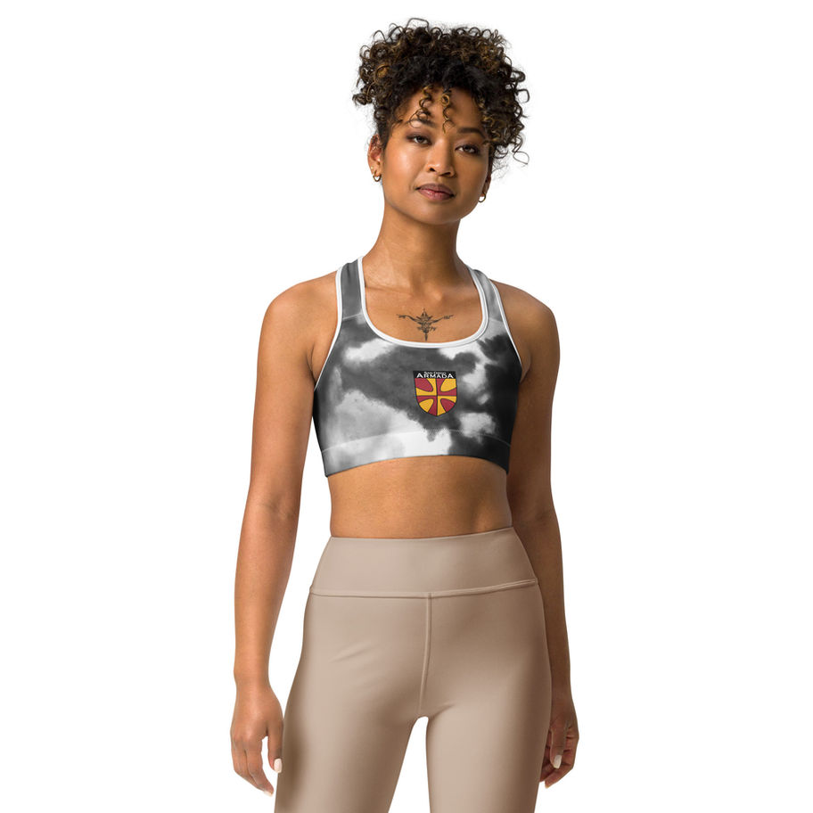 This gorgeous sports bra is made from moisture-wicking material that stays dry during low and medium intensity workouts. The bra has support material in the shoulder straps, double layer front, and a wide elastic band to ensure constant support.